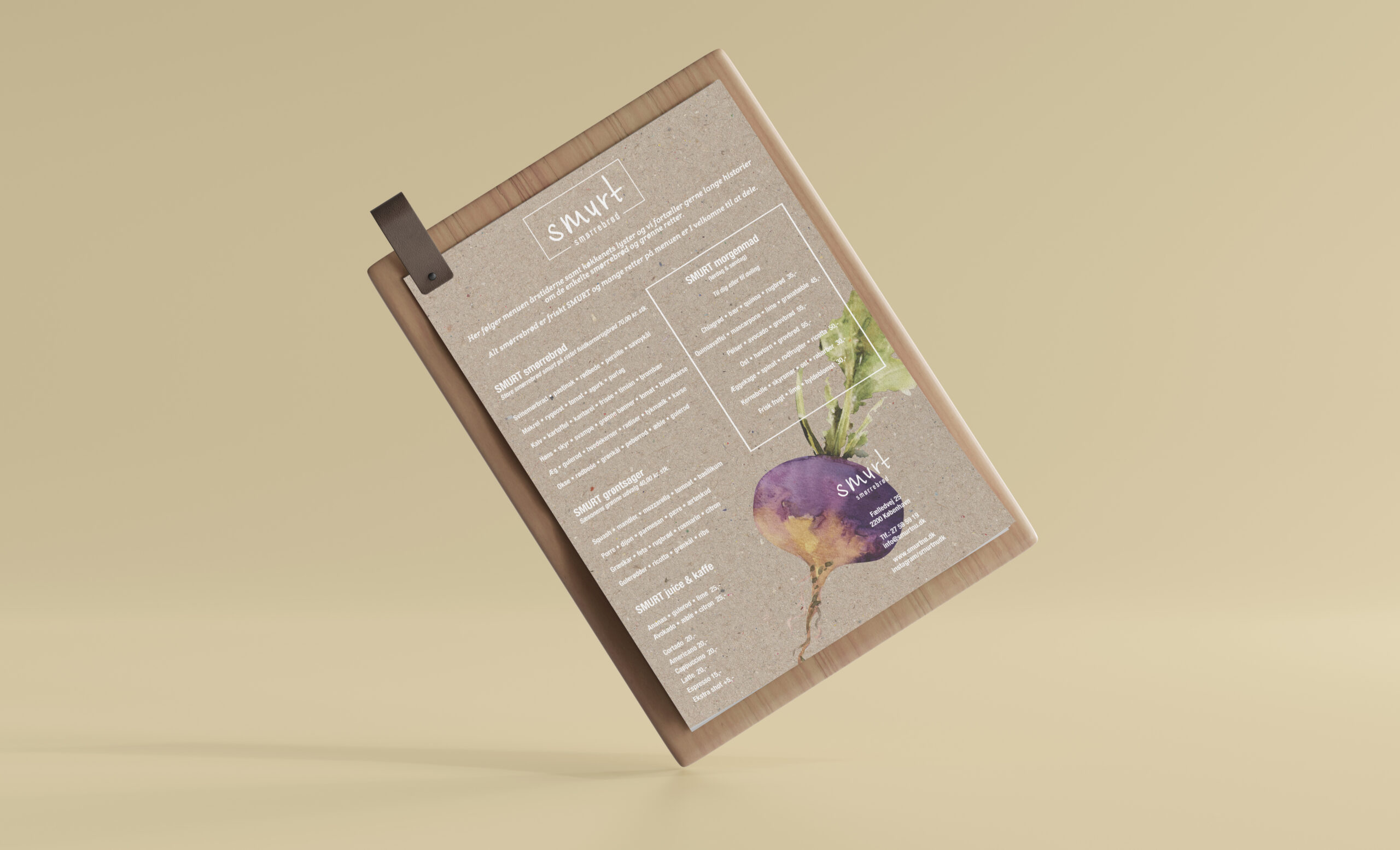 Udvikling af samlet visuel identitet for restauranten SMURT Smørrebrød. Design af diverse tryksager, samt website.
